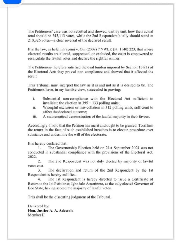 Tenebe and his party social media influencers had in the early hours of Tuesday released leaked Tribunal Judgment in favour Okpebholo, and circulated same across social media.