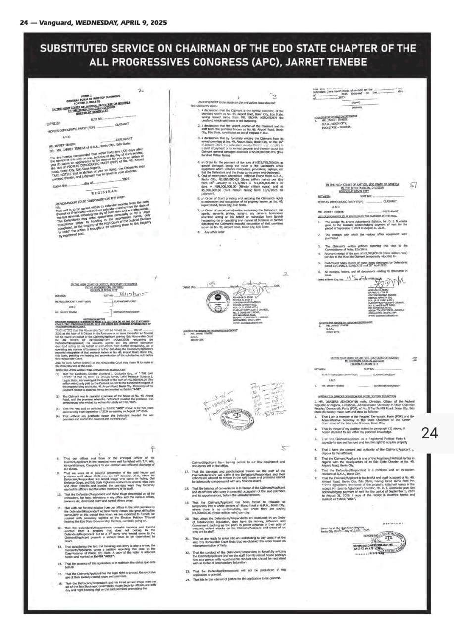 Edo PDP drags Tenebe to court over violent, illegal invasion, takeover of its secretariat, demands over N900m in damages