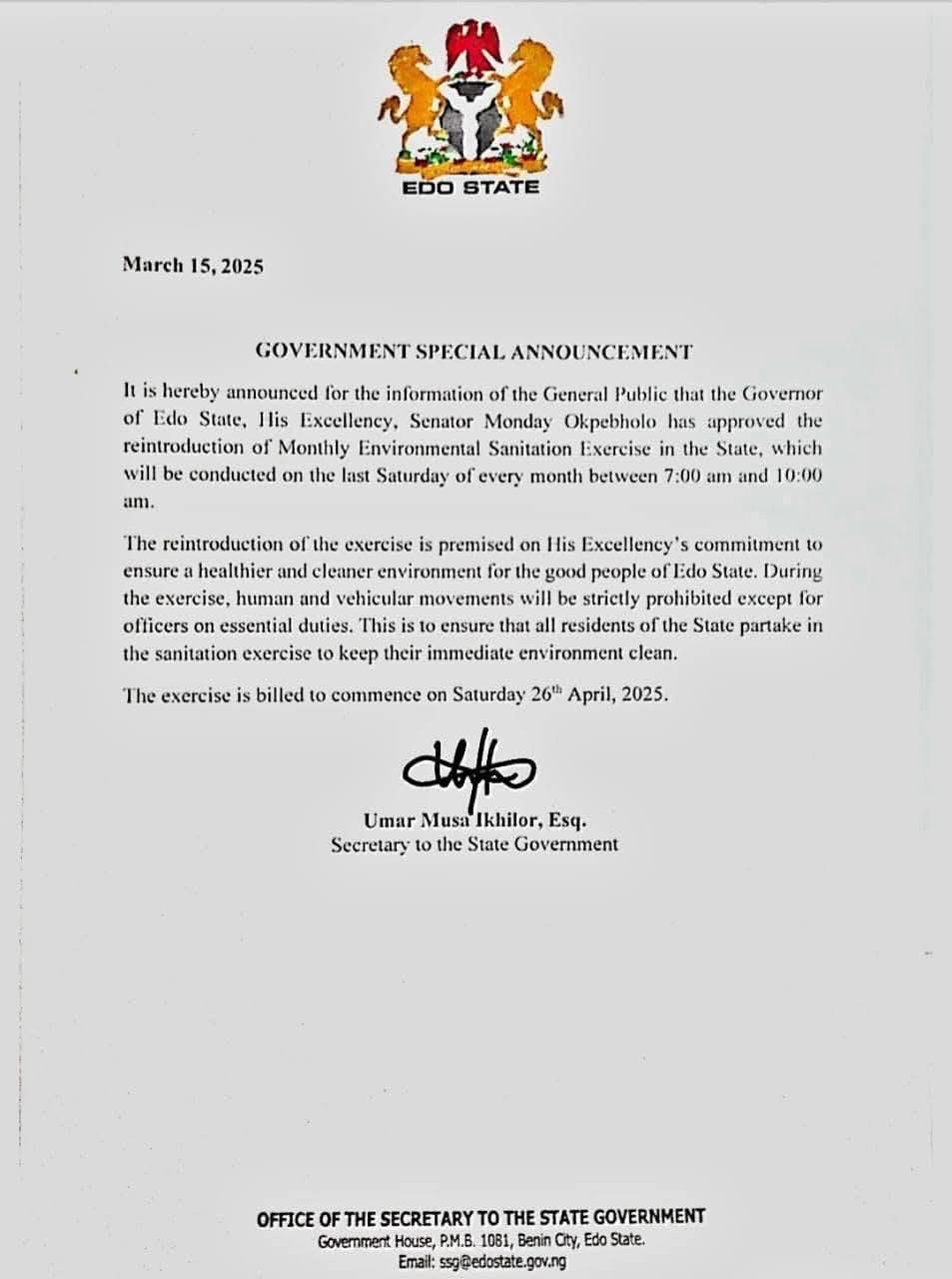 Environmental Sanitation and the Question of Legality: A Critical Appraisal of the Reintroduction of Movement Restriction in Edo State